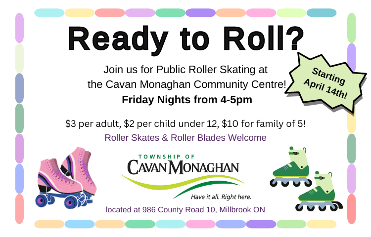 Join us for Public Roller Skating at the Cavan Monaghan Community Centre!